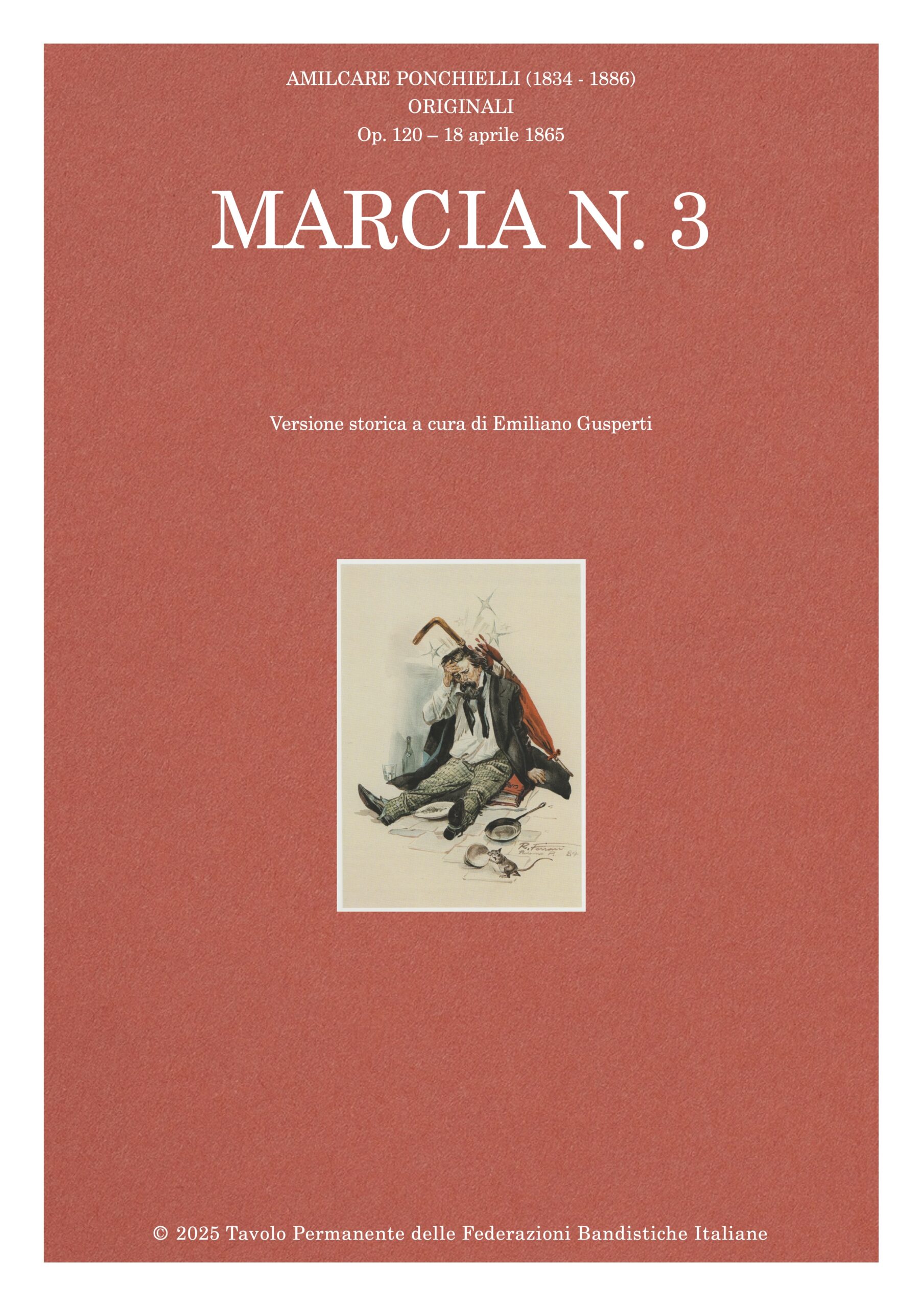 La marcia op. 120, “composta e instrumentata la sera del 18 aprile 1865”, è uno dei primi lavori scritti da Ponchielli per la Banda della Guardia Nazionale di Cremona. Ce lo conferma anche l’organico, visibilmente in fase di assestamento: in partitura si fanno notare, in particolare, un’unica parte per “Flicorno o Cornetta” e l’assenza del “Clarino in La♭”, del “Pistone in Mib” e del “Flicorno Basso” che faranno la loro comparsa nelle composizioni dei mesi successivi.